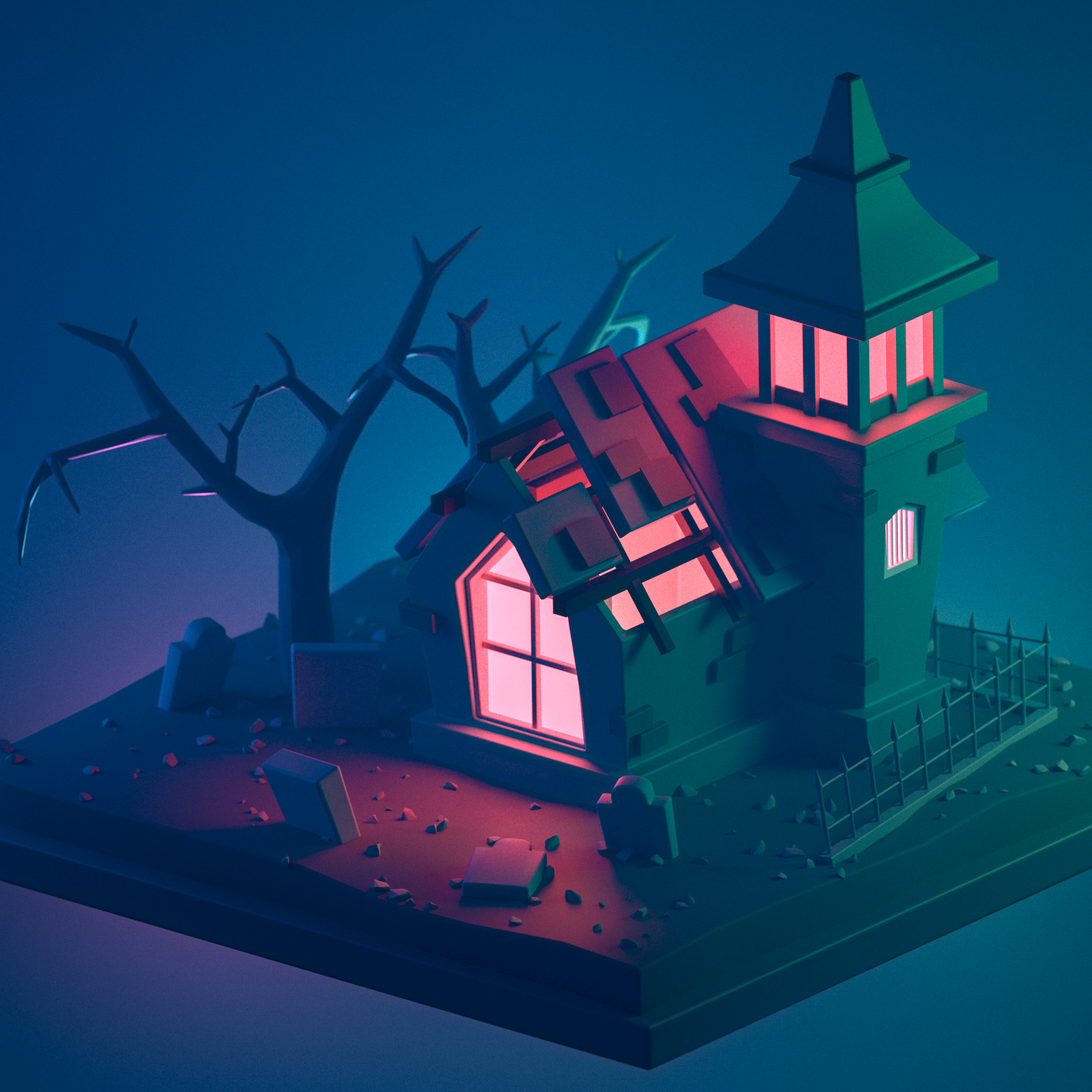 Modeled and rendered with Blender, finished with Photoshop.