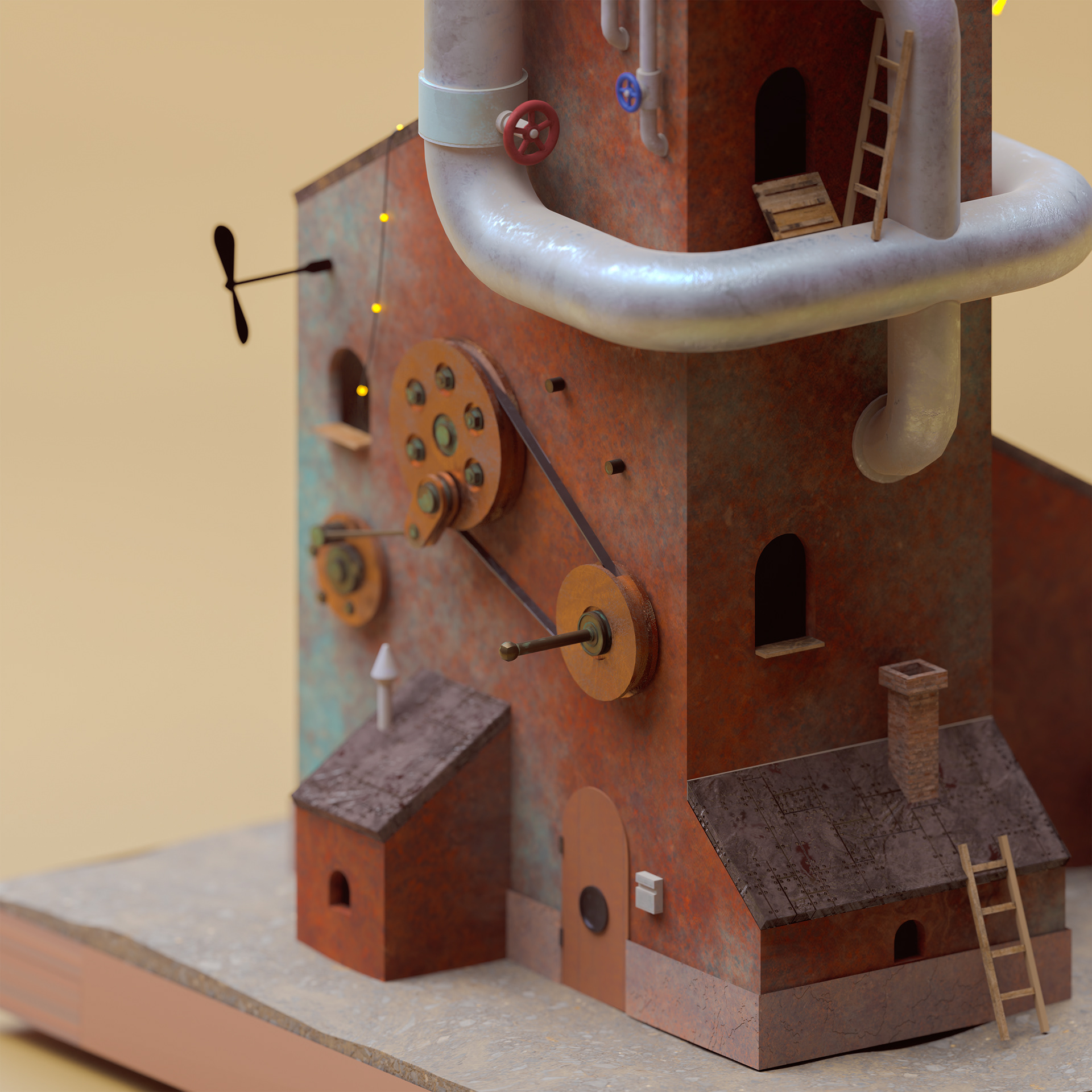 作者不明の古いイラストを3D化しました。Substance Painterで異なる素材、古びた金属、錆びた鉄、傷んだ木の板を表現することに挑戦しました。細かいディティールを重ねることでストーリー性を伝えています。